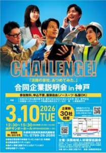 このたび、令和8年3月10日(火)に開催される 「合同企業説明会 in 神戸」 に参加いたします!