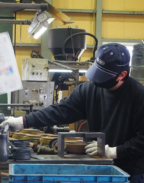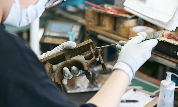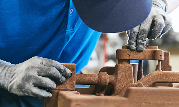 人々の暮らしを支える自動車や工業機械・船舶などの機械の部品を造るために必要な砂型を作っています。砂を固めて製品を造型する作業、マシンを使用して製品を焼き上げる作業、組み立てから出荷までさまざまな工程を行っています。